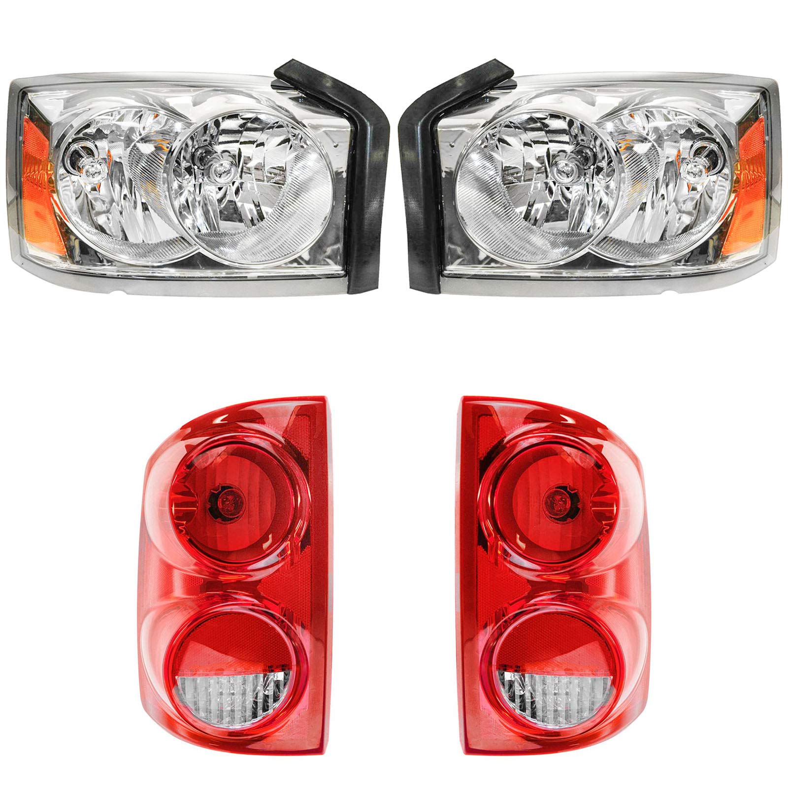 Headlight Tail Light Lamp Kit Set of 4 Compatible with 05-07 Dodge Dakota Truck
