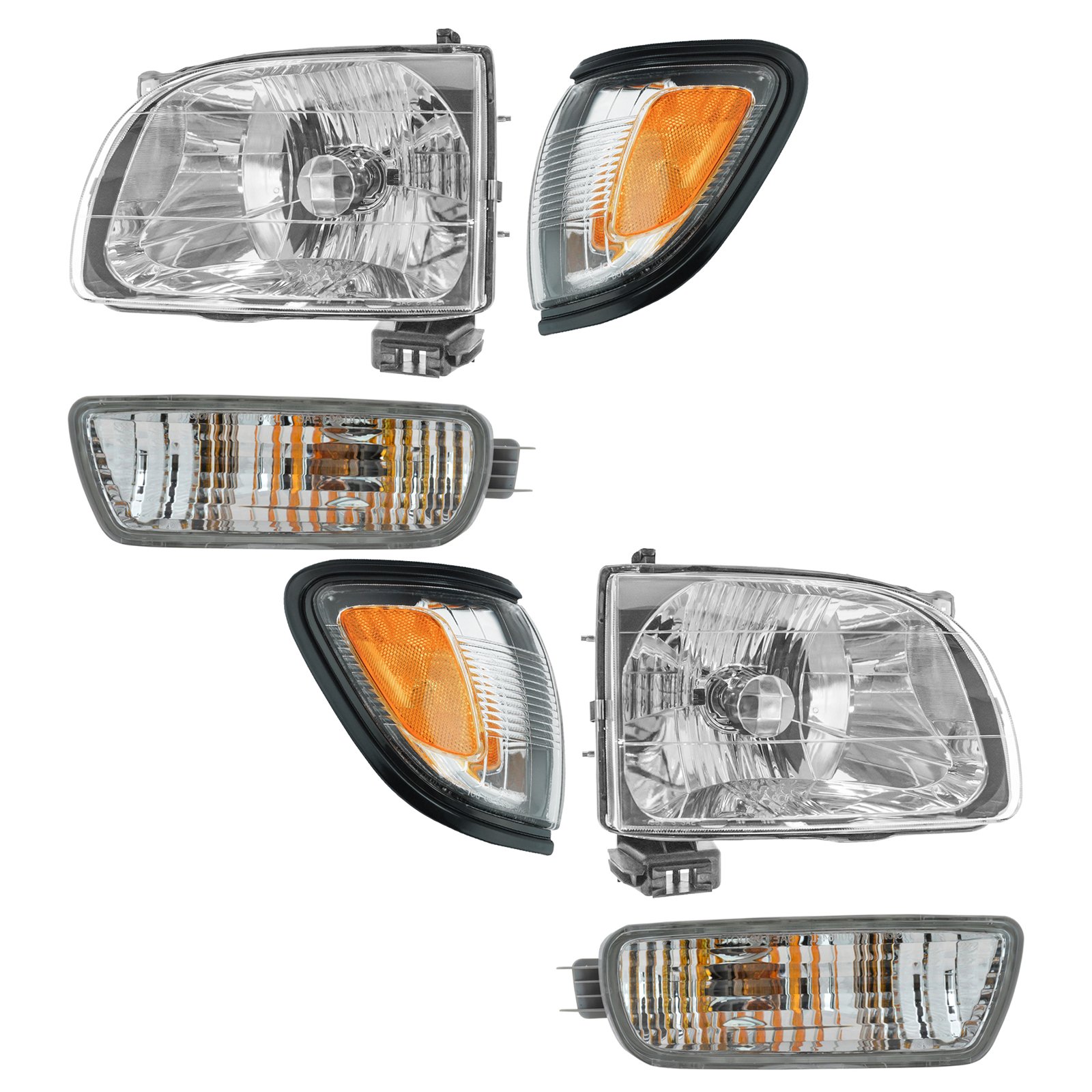 Kit Includes: (2) Headlights, (2) Black Edge Parking Lights, (2) Front Parking Lights