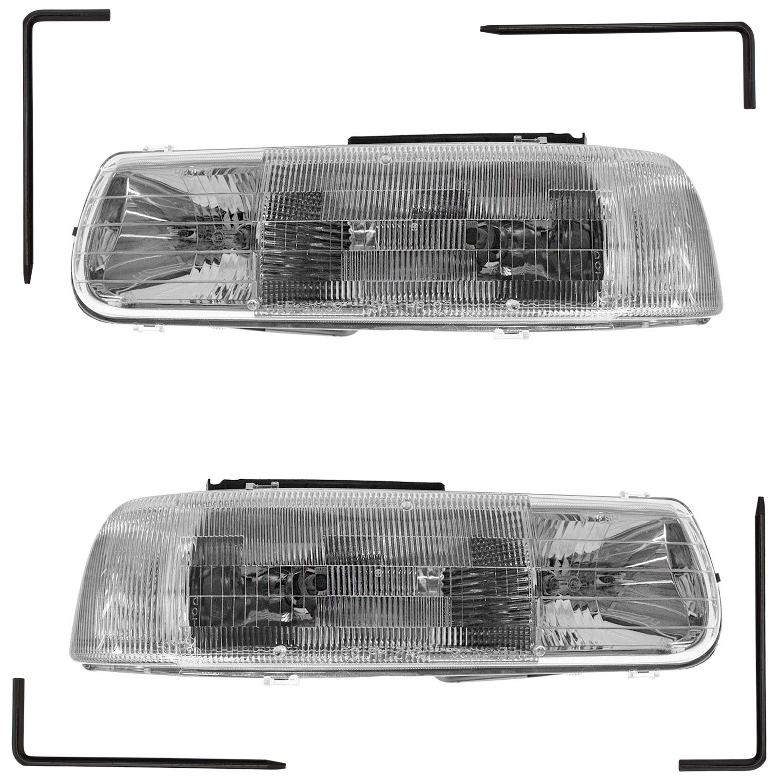 Headlights Headlamps Set & Mounting Pin Compatible with 99-02 Silverado Tahoe Suburban