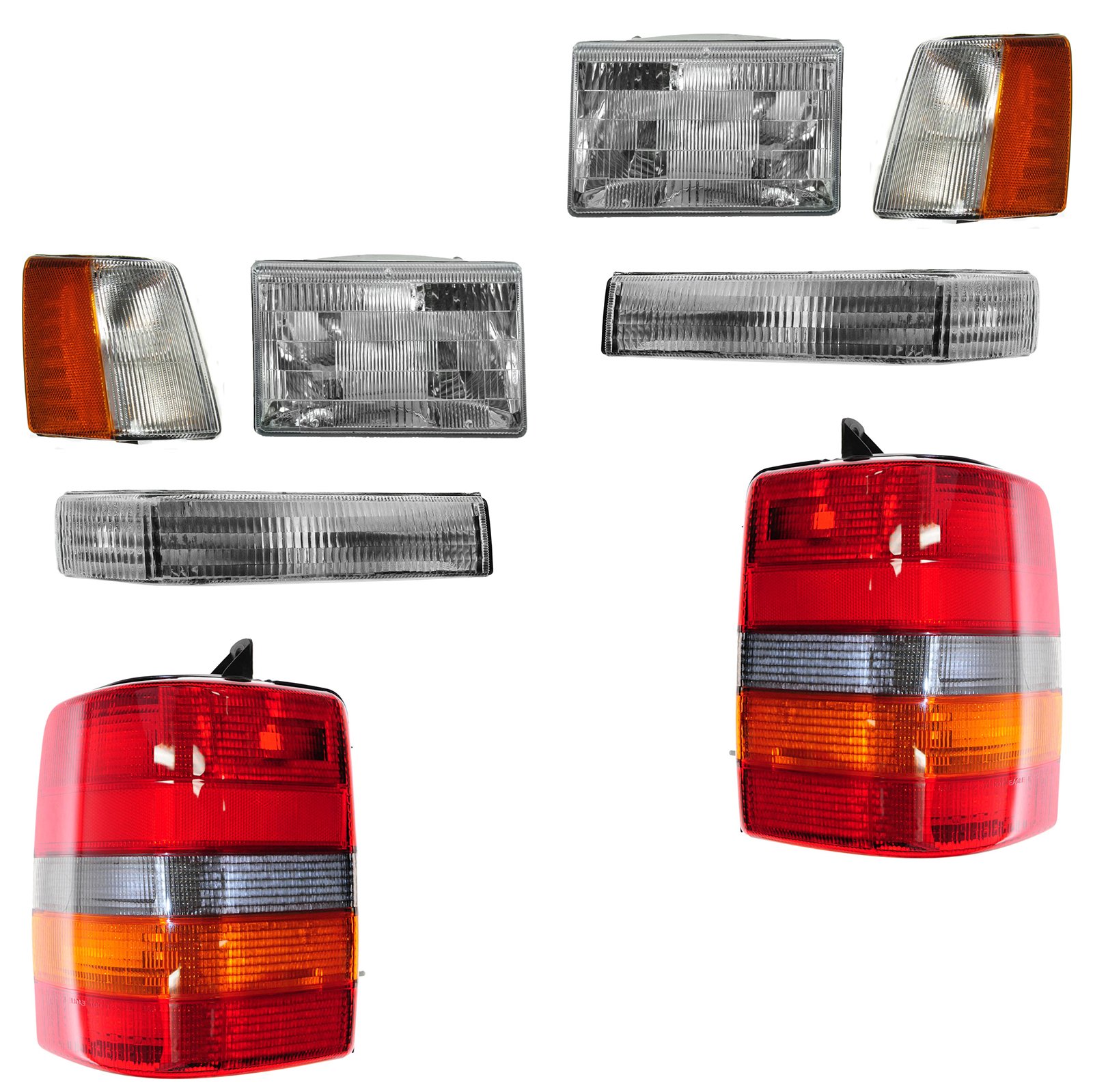 Kit Includes: (2) Headlights, (2) Parking Lights, (2) Corner Lights, (2) Tail Lights